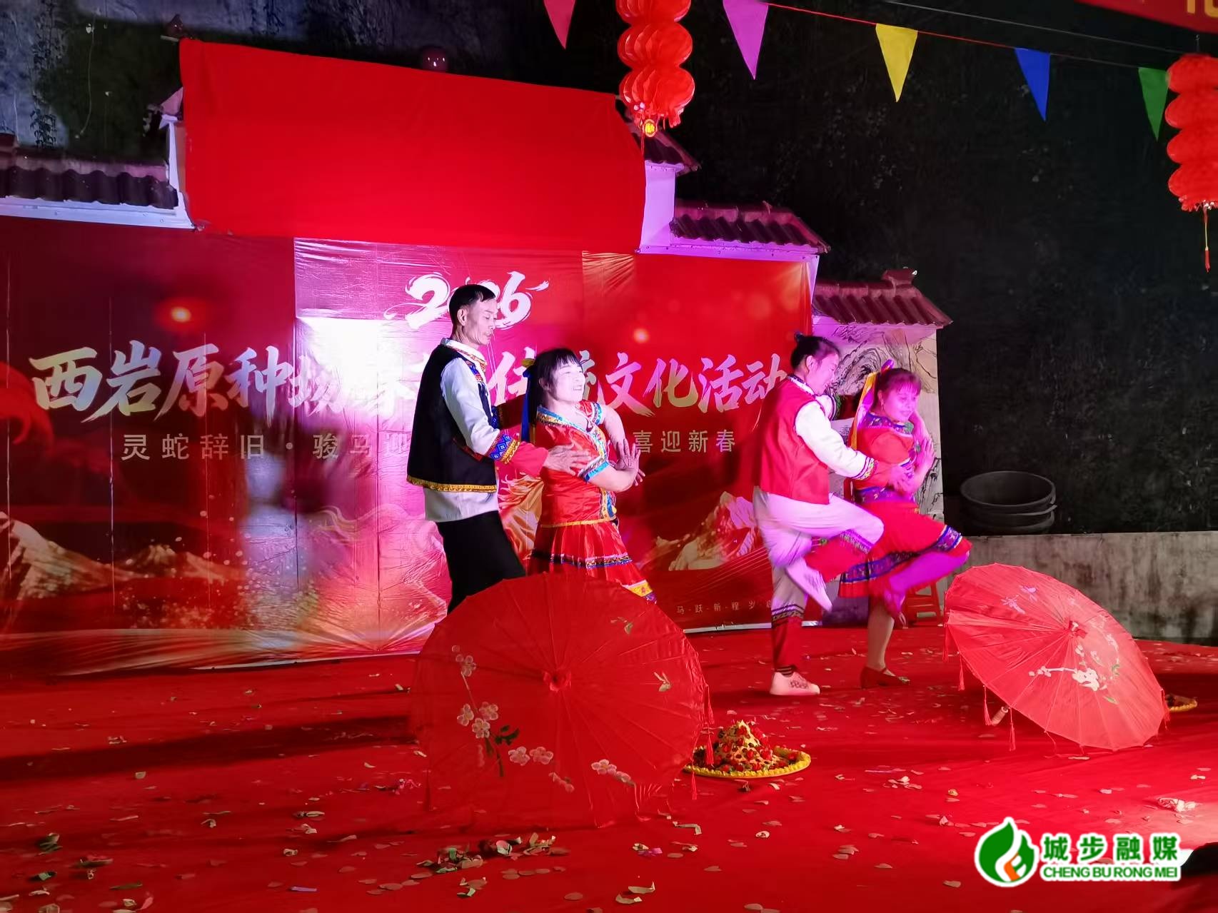礼炮九响、礼花绽放,团圆晚宴过后,大家齐聚一堂。农场负责人、西岩镇相关代表及退休老干部、老职工、青年代表、学生代表相继发言送上新春祝福。随后,民众自导自演的文艺表演隆重登场,广场舞《欢聚一堂》、苗家迎客歌、电吹管演奏《梁祝》等19个精彩节目纷至沓来,演员皆是农场群众,用最真挚的演绎展现新时代农场人的精神风貌。