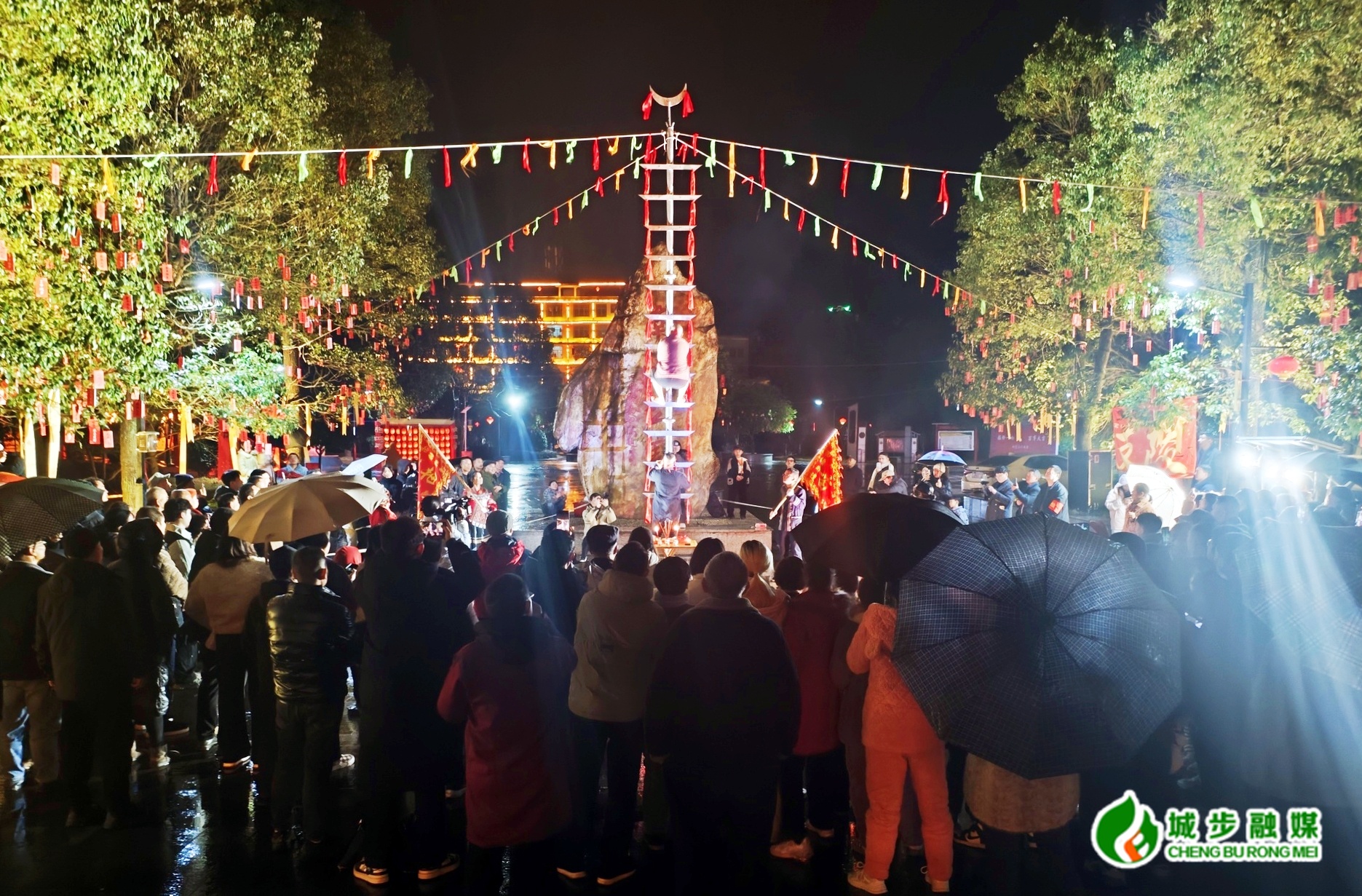 城步新闻网2月13日讯(记者 毛学军 李泽洋 见习记者 廖玲 杨芊芊)新春将至,年味正浓。2月12日晚,华灯初上,城步春节系列群众文化活动“刀火贺喜 马上赐福”民俗展演在县南湖公园举办。当地群众与归乡游子欢聚一堂,在璀璨花灯与非遗绝技的交融中,共迎新春,沉浸式感受苗乡巫傩文化的独特魅力,也为即将到来的马年新春增添了浓厚的喜庆氛围。