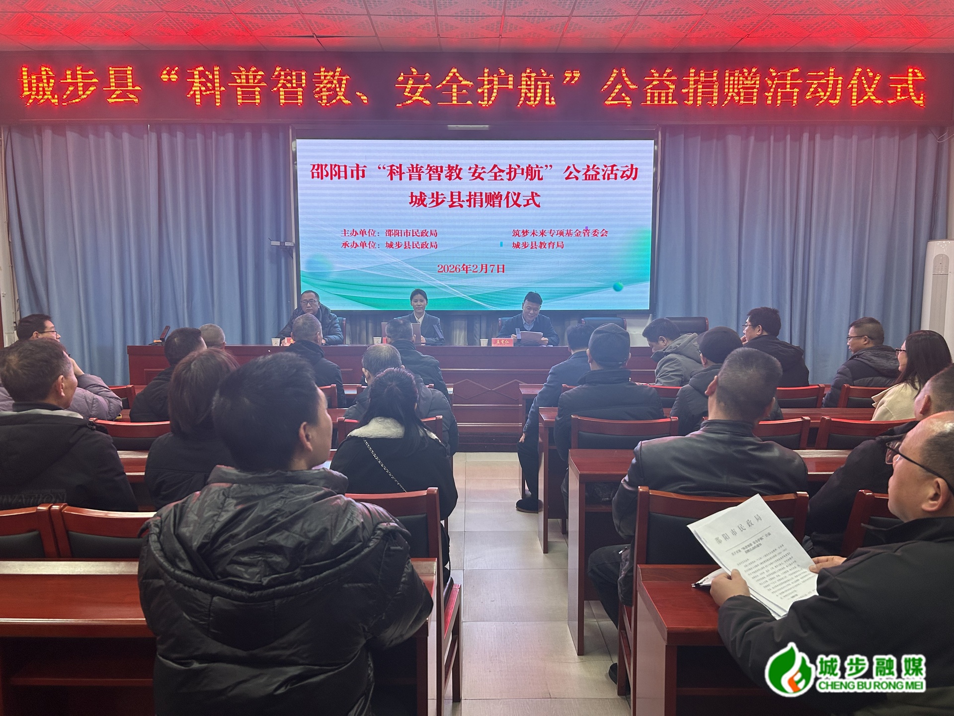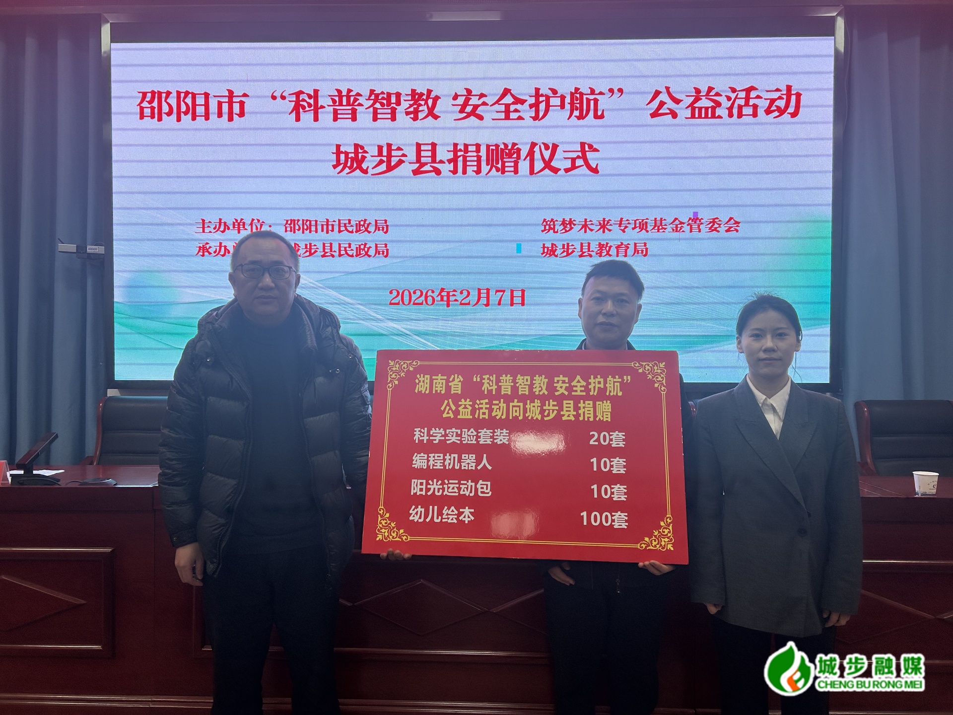 城步新闻网2月7日讯(记者 谢纪能)2月7日,城步在县教育局举行“科普智教 安全护航”公益活动捐赠仪式。筑梦未来专项基金管委会助学部部长徐心如,县教育局、县民政局相关负责人以及受捐赠学校代表参加。