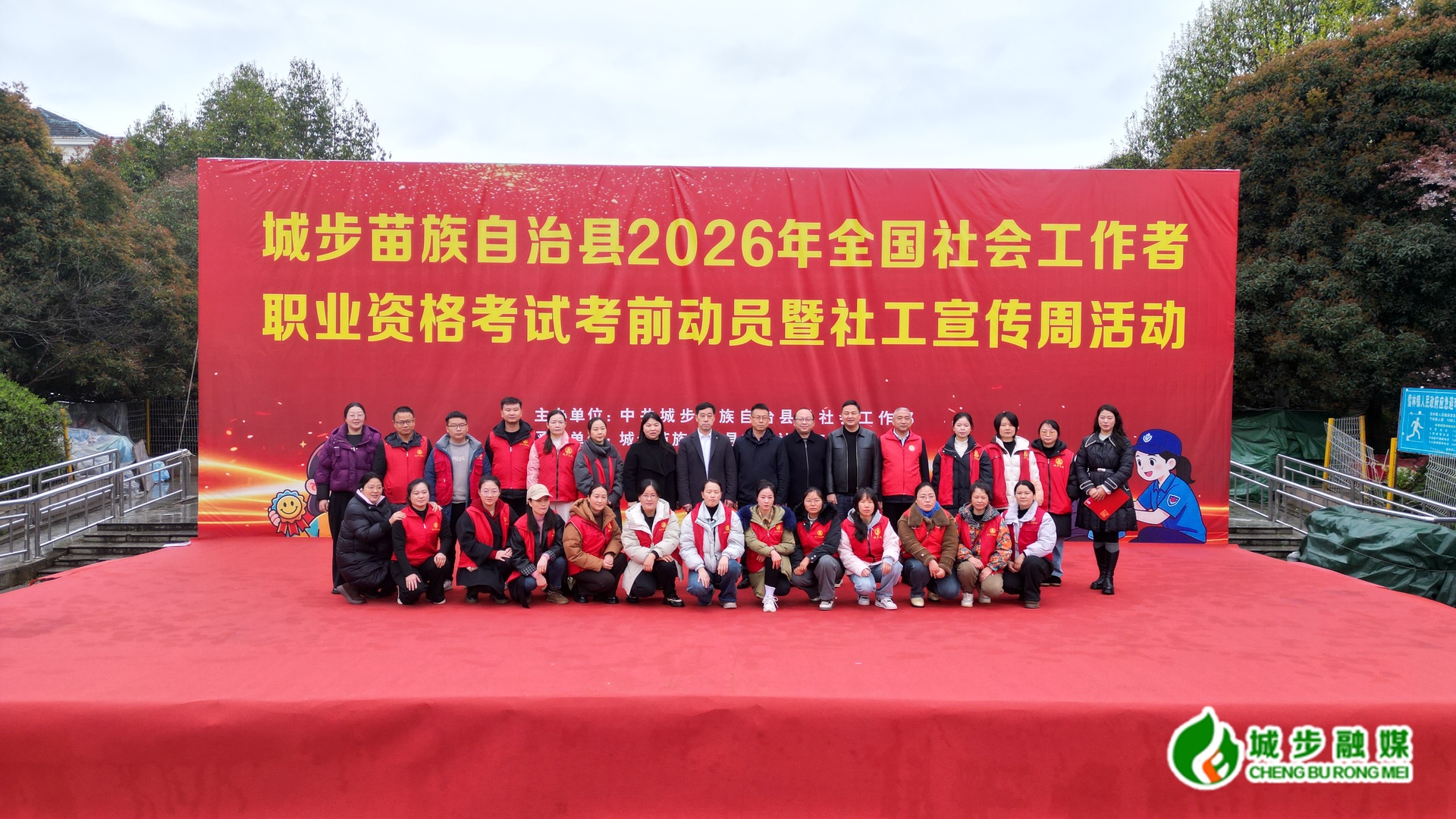 城步新闻网3月23日讯(记者 阳炜林 阳远志 通讯员 阎先仁)细雨润苗乡,社工暖人心。3月20日,由县委社会工作部主办,县方圆社会工作服务中心承办的城步苗族自治县2026年全国社会工作者职业资格考试考前动员暨社工宣传周活动在儒林广场举行。来自全县各相关单位、乡镇(场)的负责人,社工从业者、备考考生及社会各界群众代表等参加。