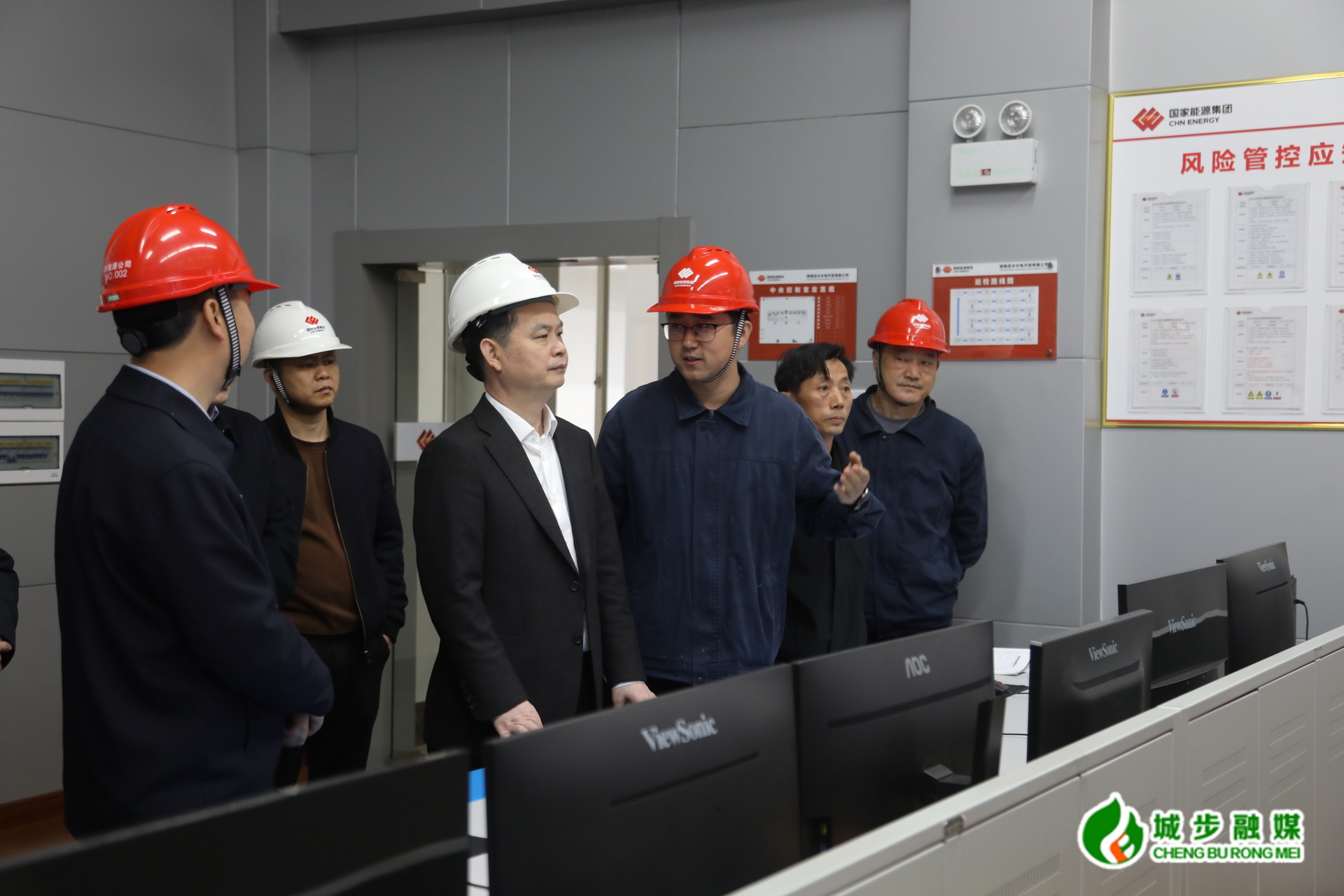 图为县委书记何德波一行在电站调度中心了解白云湖水位等情况