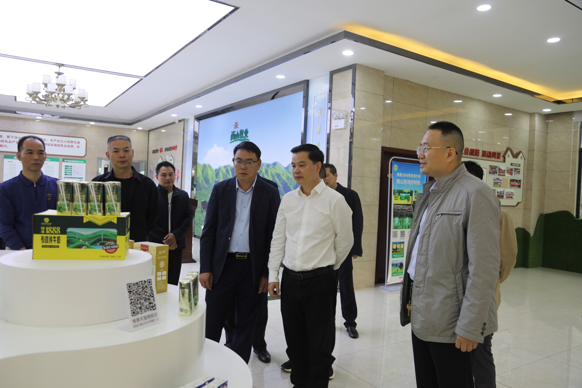 图为县委书记何德波一行在湖南南山牧业有限公司调研