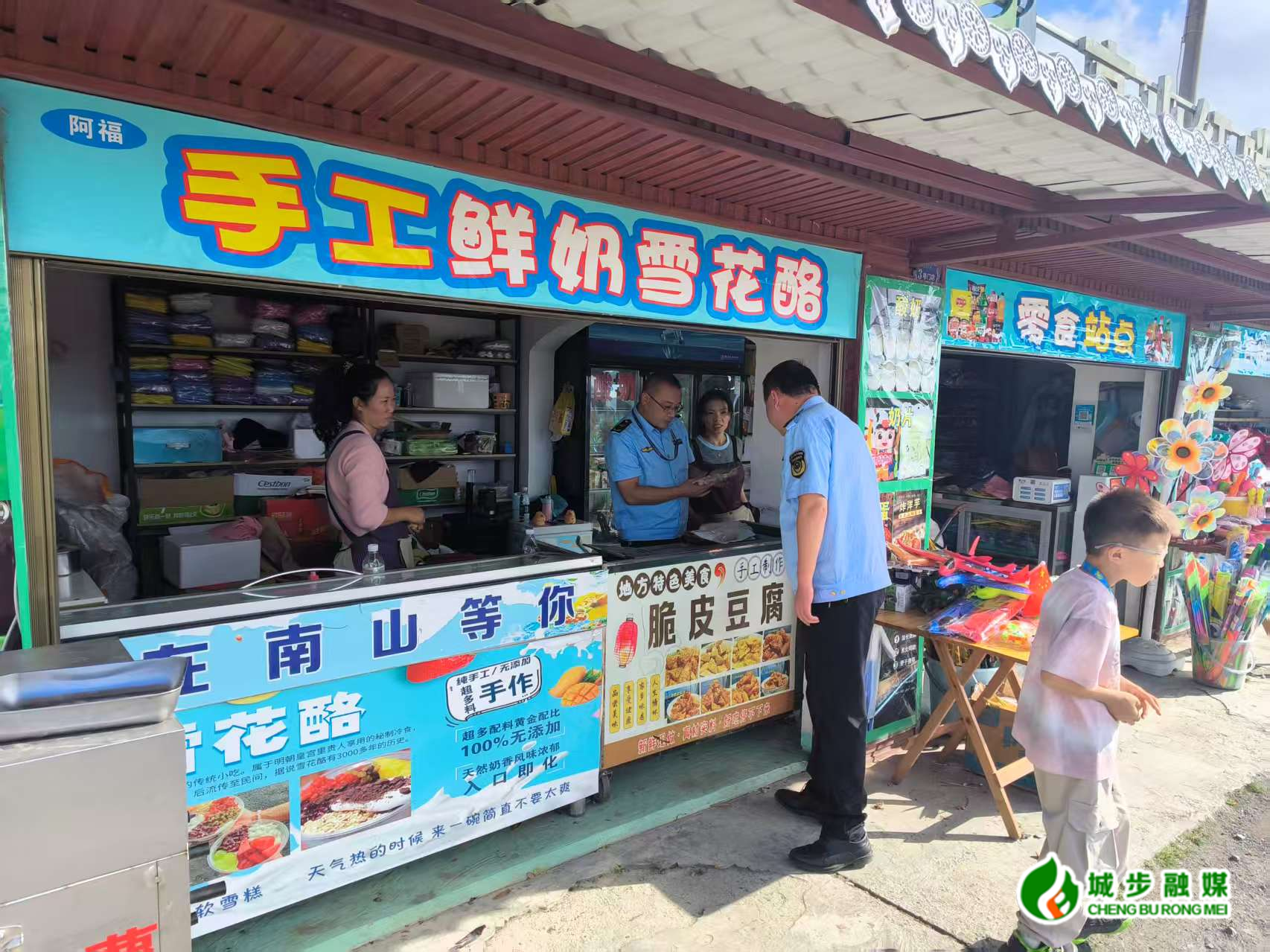 此次行动聚焦景区食品经营关键环节,重点检查食品来源可溯性、储存条件合规性及经营资质完备性等核心要素,严厉打击无证经营、销售假冒伪劣食品等违法违规行为。该局专门组建4个检查组,对景区商户实施“分段式、全覆盖”检查,确保检查无死角、监管无盲区。此次行动,累计出动执法人员20余人,检查各类食品经营商户80余家。