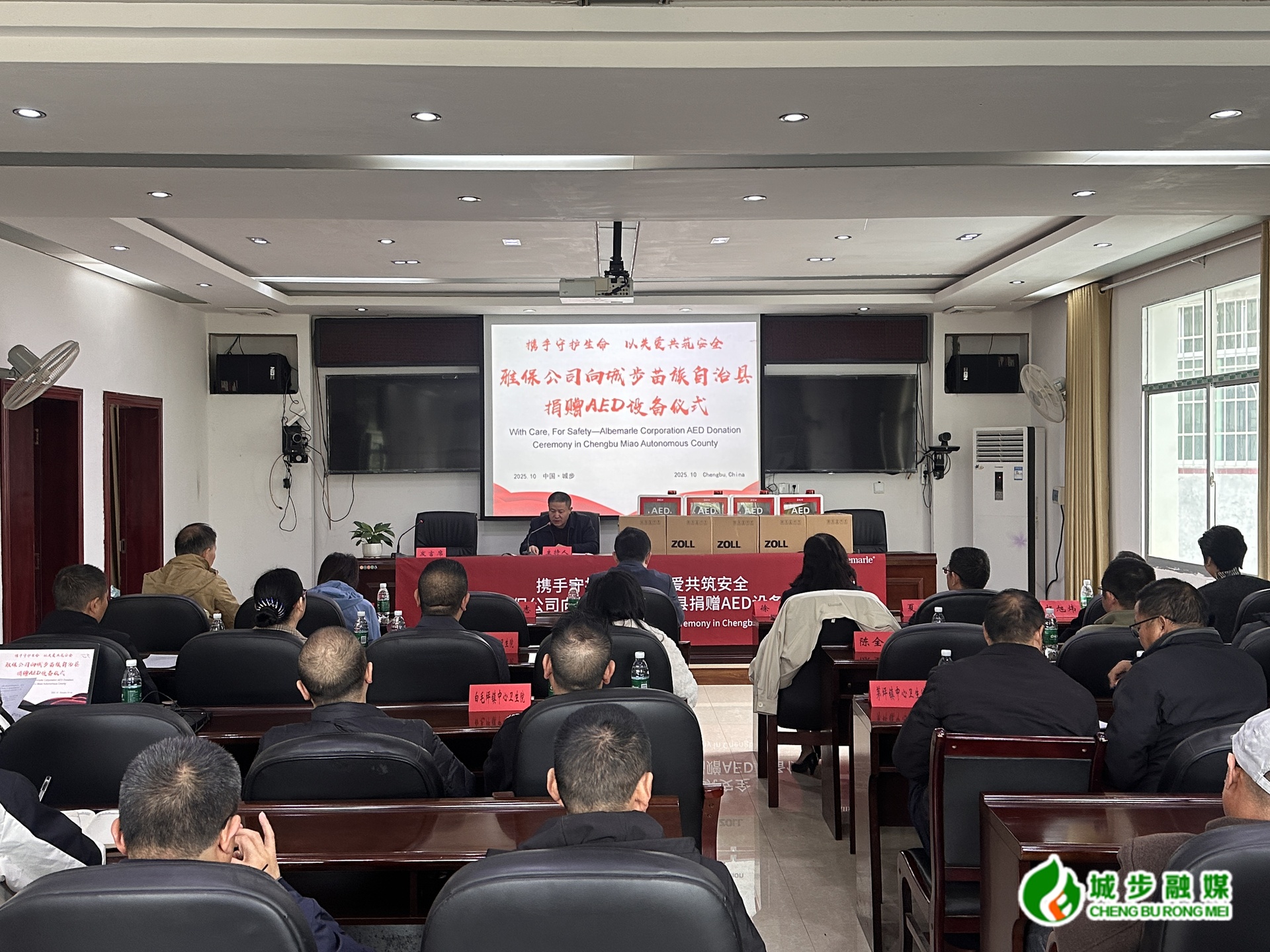 城步新闻网10月23日讯(见习记者 肖彤丹)10月23日上午,“携手守护生命 以关爱共筑安全”雅保公司向城步捐赠AED设备仪式在城步卫健局举行。县委常委、副县长提名人选周琳出席并讲话,县人民政府副县长王章志主持捐赠仪式,雅保中国区总裁兼全球对外事务副总裁徐旸等参加。