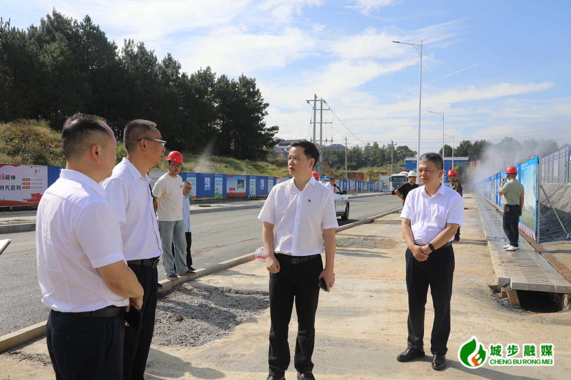 图为县委书记何德波在城北农副产品冷链物流交易市场建设项目现场督导安全生产工作
