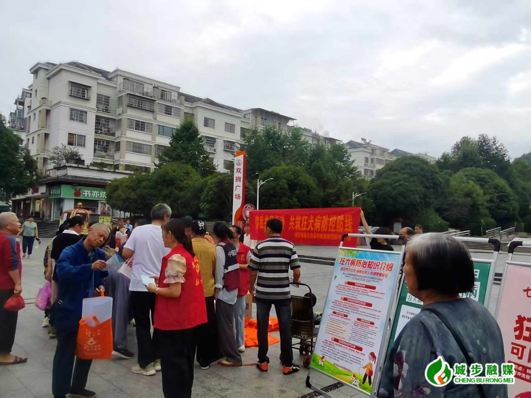 城步新闻网10月9日讯(通讯员 杨赛英)为进一步提升市民的狂犬病防控意识,有效降低狂犬病传播风险,保障人民群众生命健康,近日,城步畜牧水产事务中心、城步疾病预防控制中心在儒林广场联合开展“你我共同行动 共筑狂犬病防控防线”宣传活动。