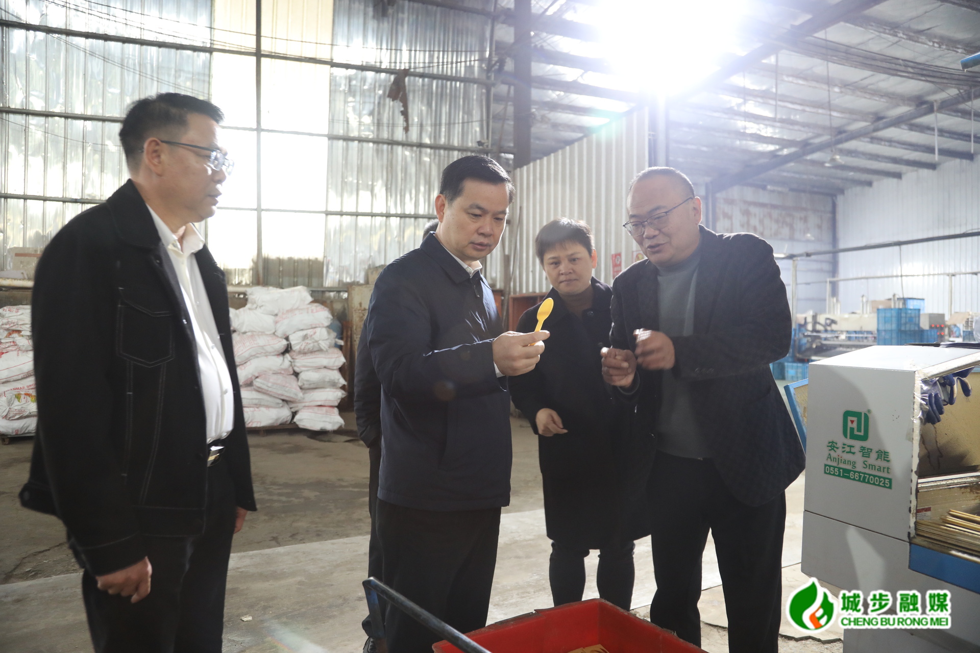 图为县委书记何德波一行在湖南七七科技股份有限公司走访调研