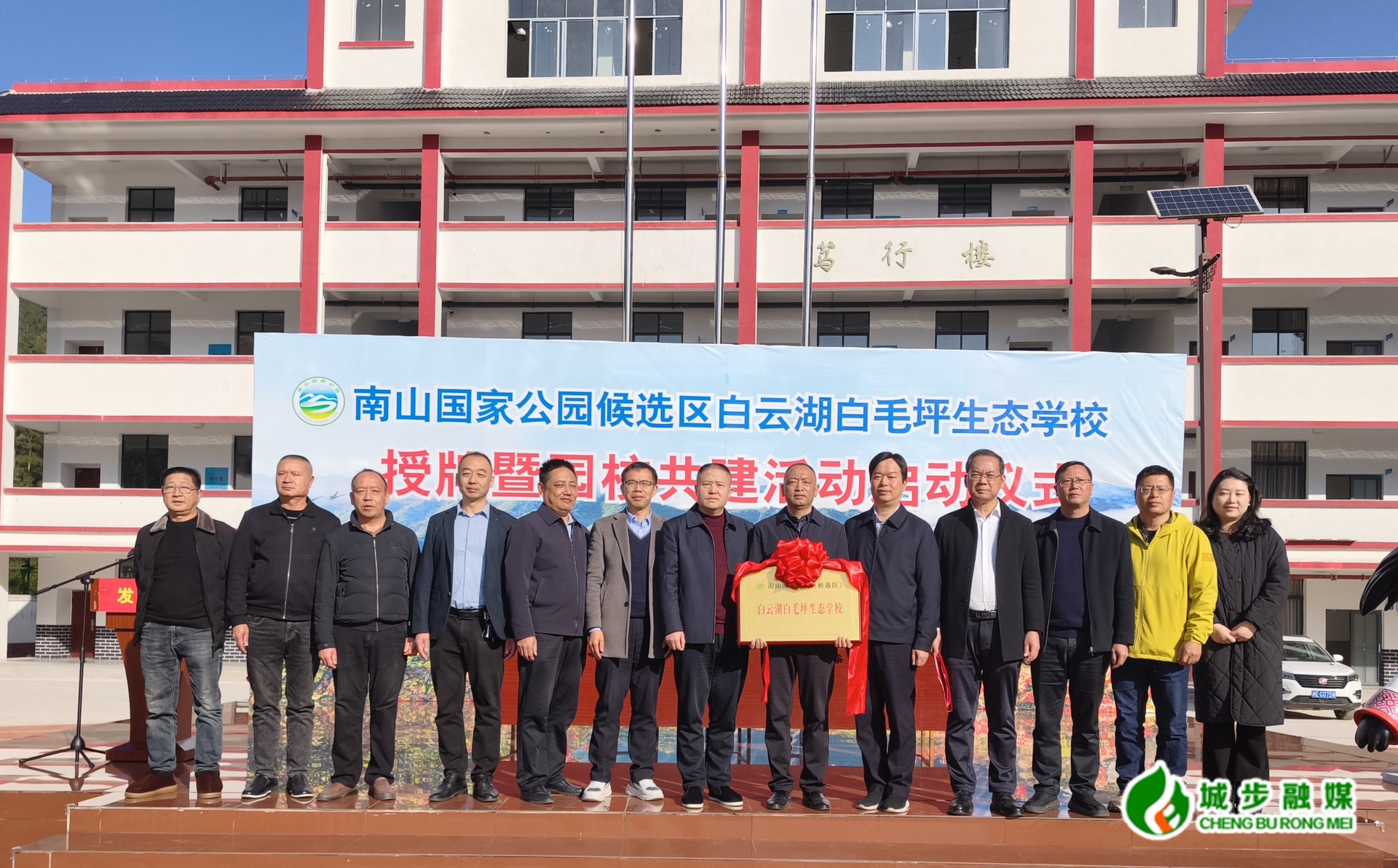 城步新闻网11月26日讯(记者 李泽洋)11月25日,南山国家公园候选区白云湖白毛坪生态学校授牌暨园校共建活动启动仪式在白毛坪镇中心小学举行。湖南南山国家公园管理局主要负责人周建宏、县人民政府副县长王章志出席并讲话;湖南南山国家公园管理局党委副书记、副局长苏海主持;湖南南山国家公园管理局相关处室、城步教育局、白毛坪镇主要负责人等参加。