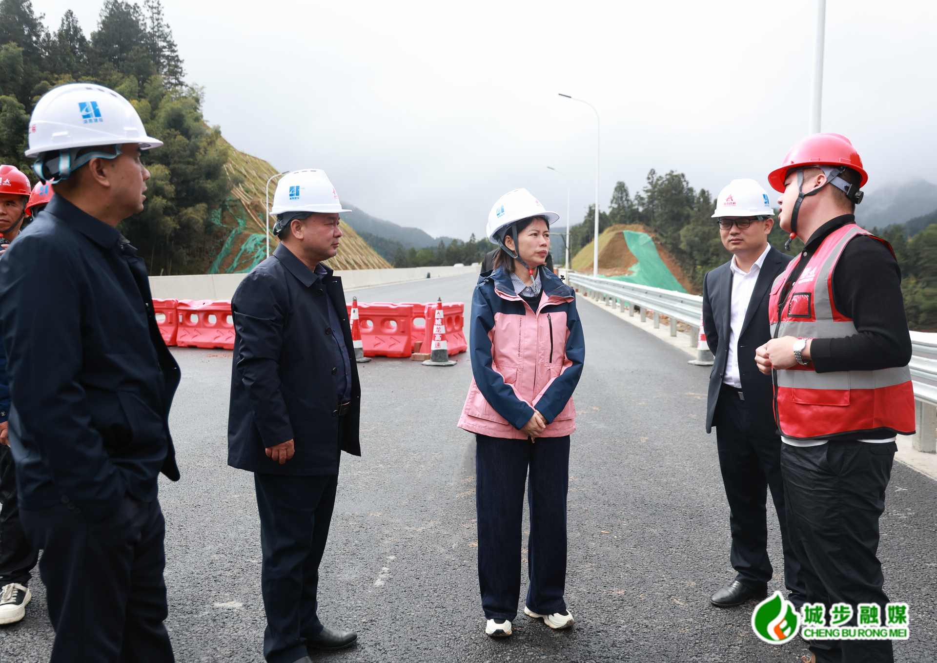 图为县委副书记、县长王慧敏在城龙高速在建工程点(横水村)督导施工情况