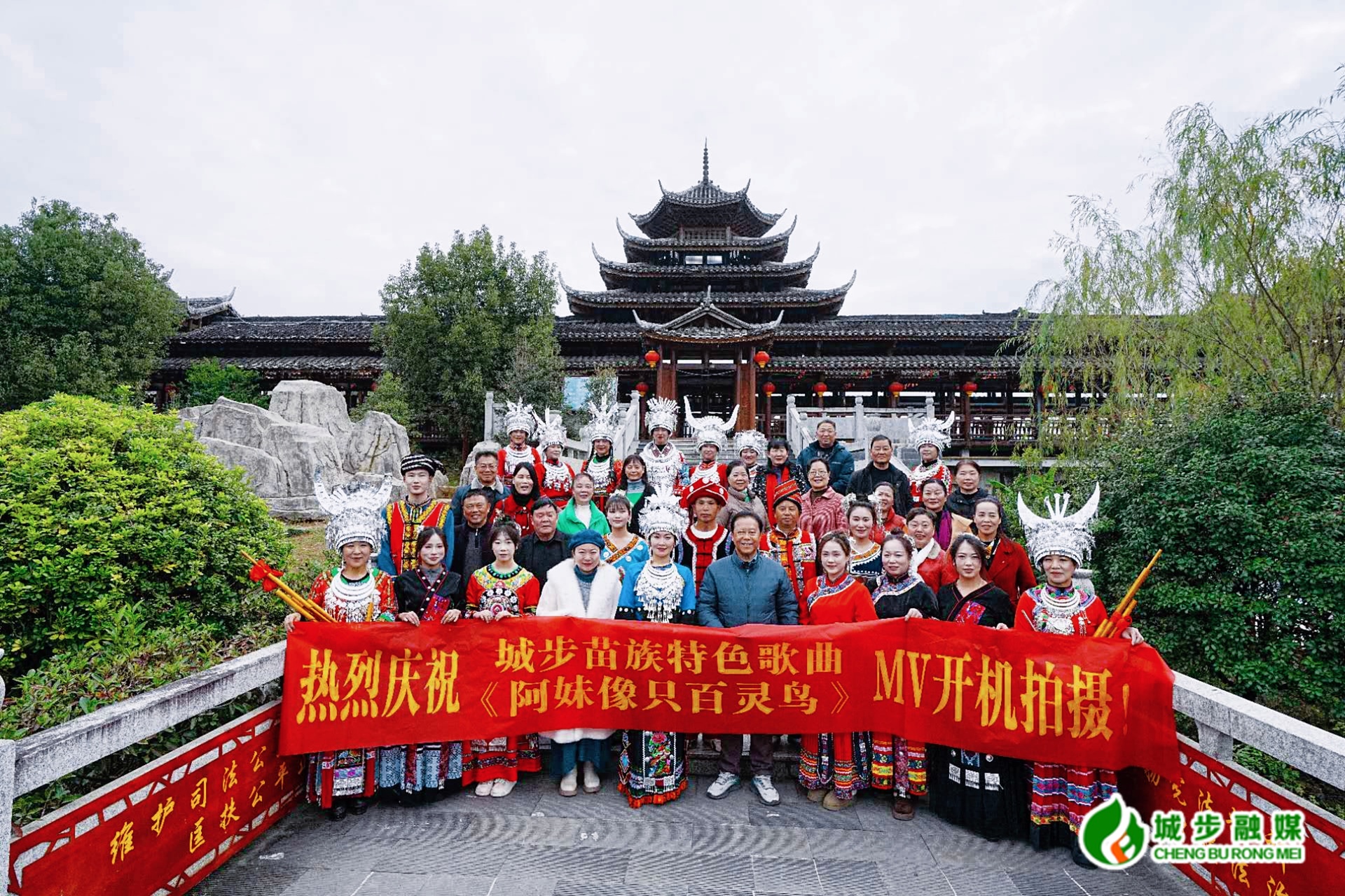 城步新闻网12月19日讯(记者 阳炜林 通讯员 王祥志)近日,城步特色歌曲《阿妹像只百灵鸟》MV正式开机拍摄。首日拍摄在南湖公园进行,拍摄组与公益志愿者、群众演员共同参与。被誉为“百灵鸟”的苗族歌手陈芳清身着苗族盛装,在绿地草坪上深情演唱,歌声清脆悦耳、宛转悠扬,与苗乡风光相映成趣。