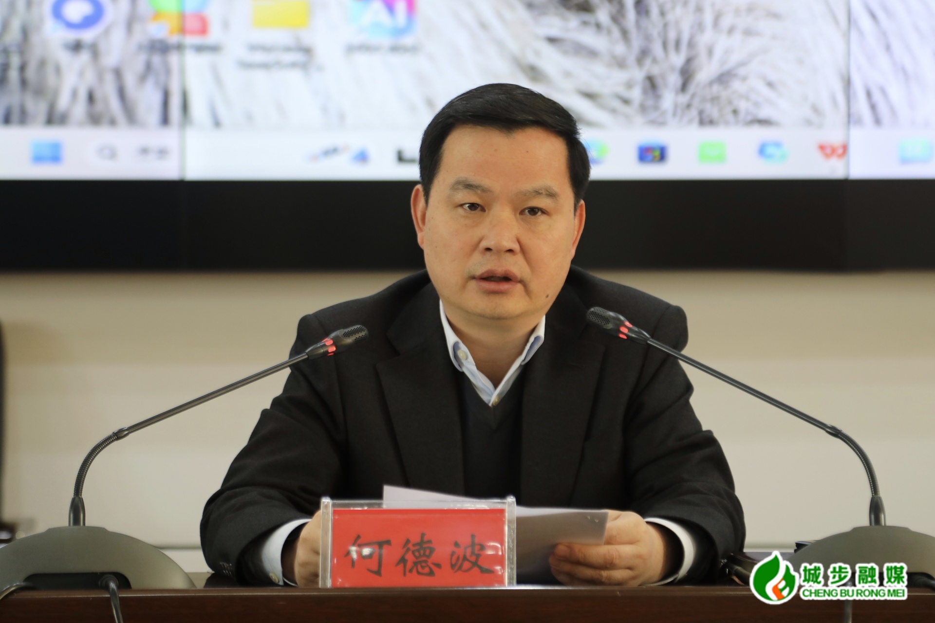 图为县委书记何德波主持会议