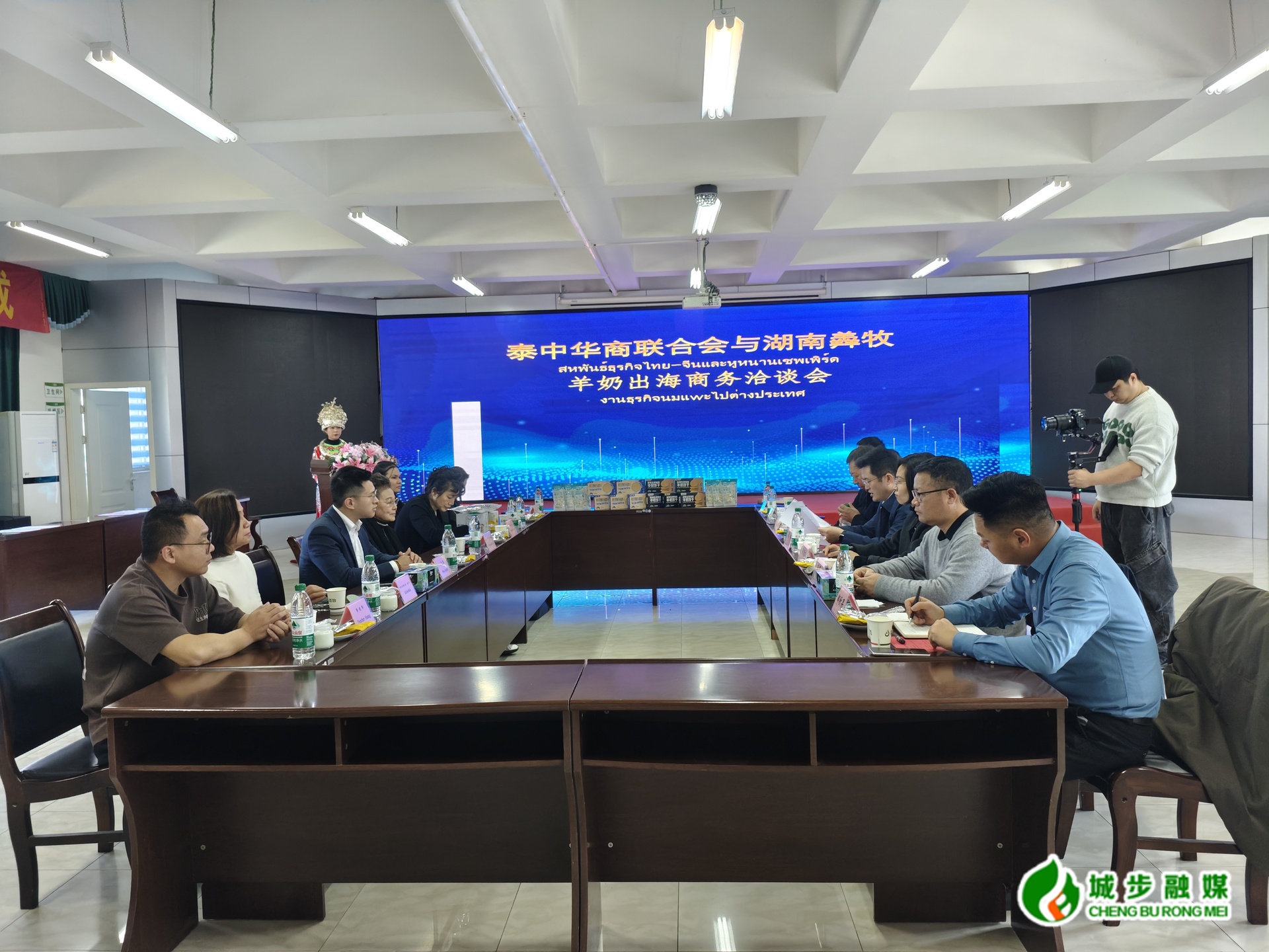 城步新闻网12月11日讯(记者 毛学军)12月10日,泰国席琳·荣颂亲王率领泰中华商联合会代表团赴湖南羴牧牧业有限公司进行考察交流。县委常委、副县长周琳出席泰中华商联合会与湖南羴牧羊奶出海商务洽谈会并讲话,城步商务局主要负责人、湖南羴牧集团董事长等参加。