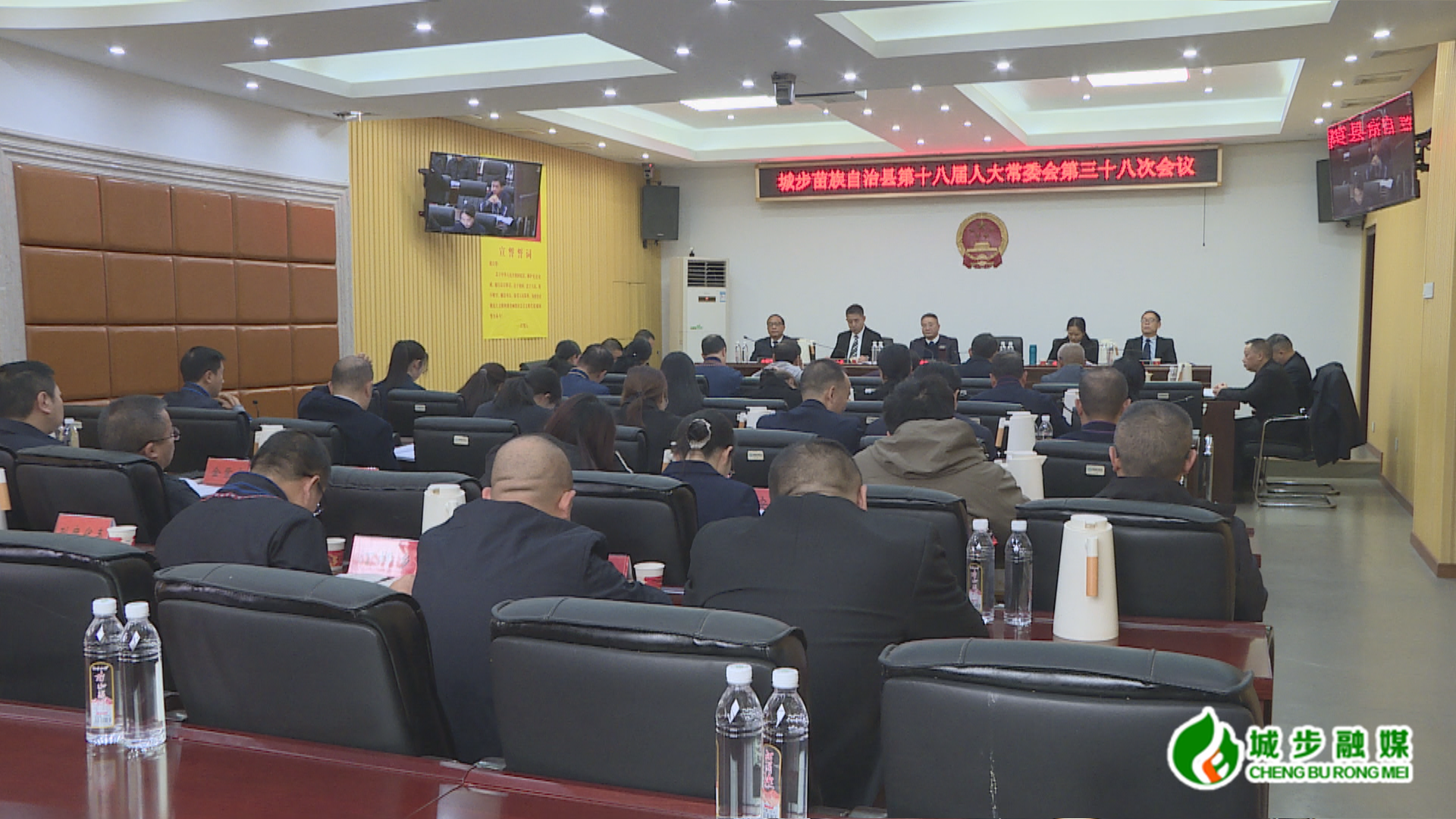 城步新闻网12月23日(记者 毛学军)12月22日,城步苗族自治县第十八届人民代表大会常务委员会第三十八次会议在县人大机关三楼会议室召开。县人大常委会党组书记、主任李宪主持会议并讲话,县人大常委会副主任周小毛、漆小玲、肖辉凤、唐炎及县人大常委会委员出席。会议应到县人大常委会组成人员26人,因事请假4人,实到22人,符合法定人数。
