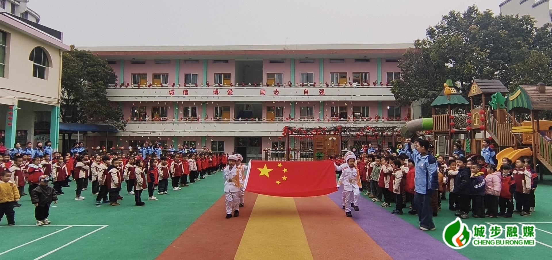 活动在庄严肃穆的升旗仪式中拉开序幕,激昂的国歌声响彻校园,鲜艳的五星红旗冉冉升起,孩子们昂首挺胸,眼神中充满了对祖国的热爱与敬仰。升旗仪式结束后,该园党支部书记、园长发表了热情洋溢的讲话,她鼓励孩子们在新的一年里勇敢追梦、健康成长。同时对孩子们的进步也给予了充分肯定,并送上了新年的祝福,话语中充满了对孩子们的关爱与期望。
