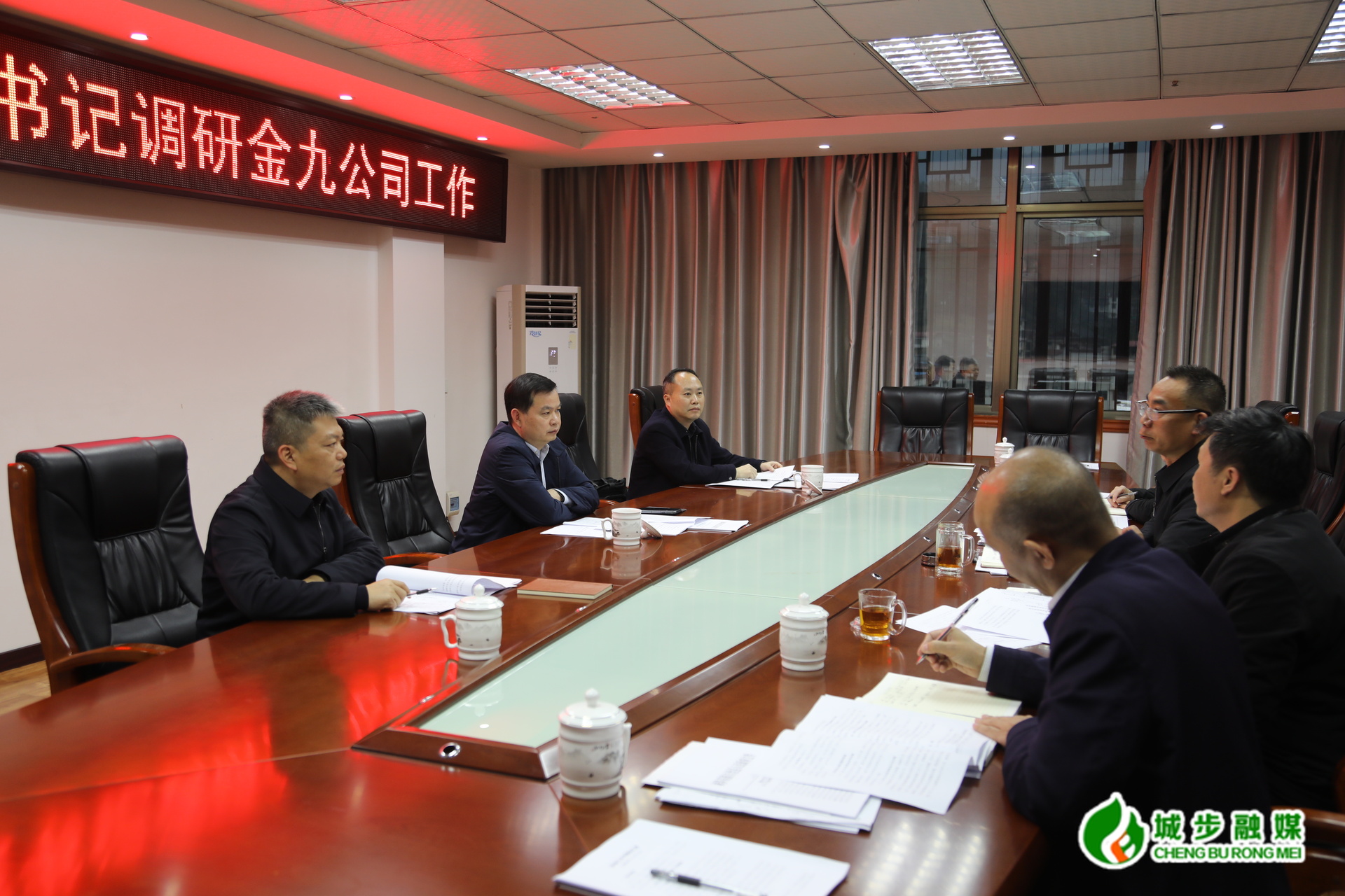 图为县委书记何德波在县金九公司调研
