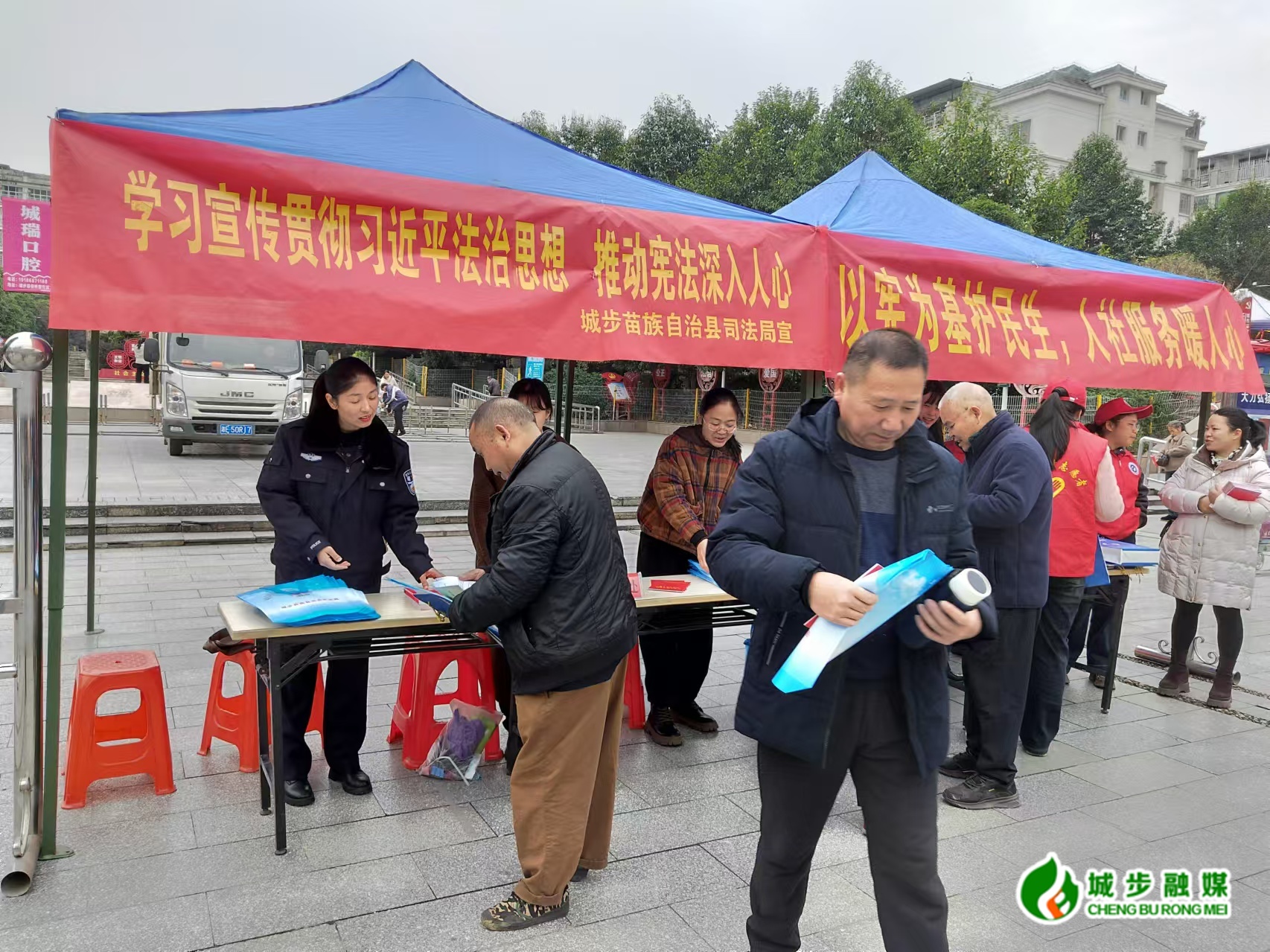 城步新闻网12月4日讯(记者 李泽洋)今年12月4日是第十二个国家宪法日。当天,城步以“学习宣传贯彻习近平法治思想,推动宪法深入人心”为主题,在儒林广场开展2025年“宪法宣传周”活动。此次活动由县委宣传部、县司法局、县妇联、县公证处等部门联合开展,通过全方位、多层次的宣传形式,让宪法精神扎根苗乡基层、融入群众生活。
